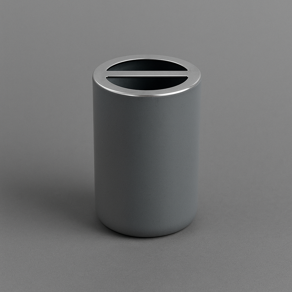 Porta spazzolino della serie saronno, dal design semplice e moderno. Realizzato in plastica resistente con finitura grigio elegante, è ideale per mantenere ordinato il bagno con stile e praticità. Perfetto da abbinare agli altri accessori della stessa linea.
