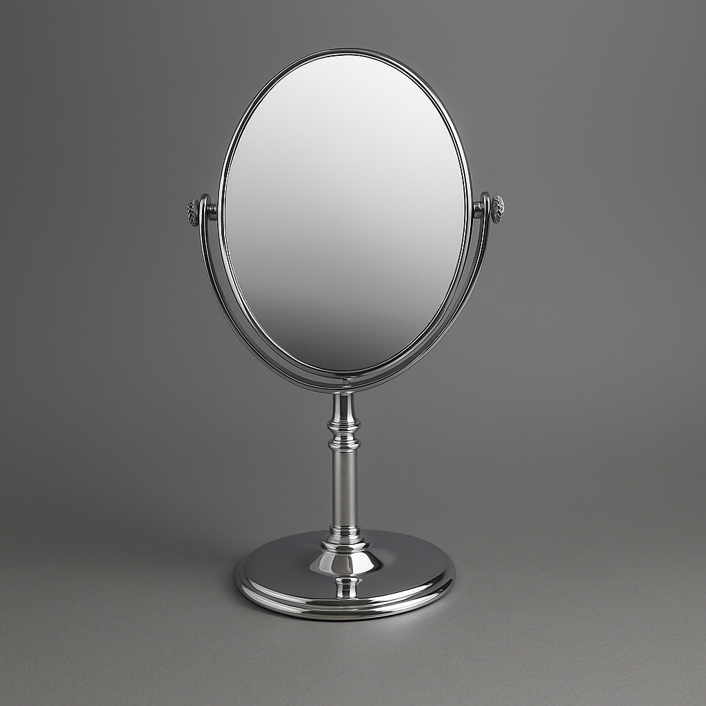 Lo specchio da appoggio doppia faccia 8” offre un’ampia superficie riflettente e un design raffinato con finitura cromata. Ideale per make-up, rasatura o cura del viso, unisce funzionalità e stile in un unico accessorio da toeletta.