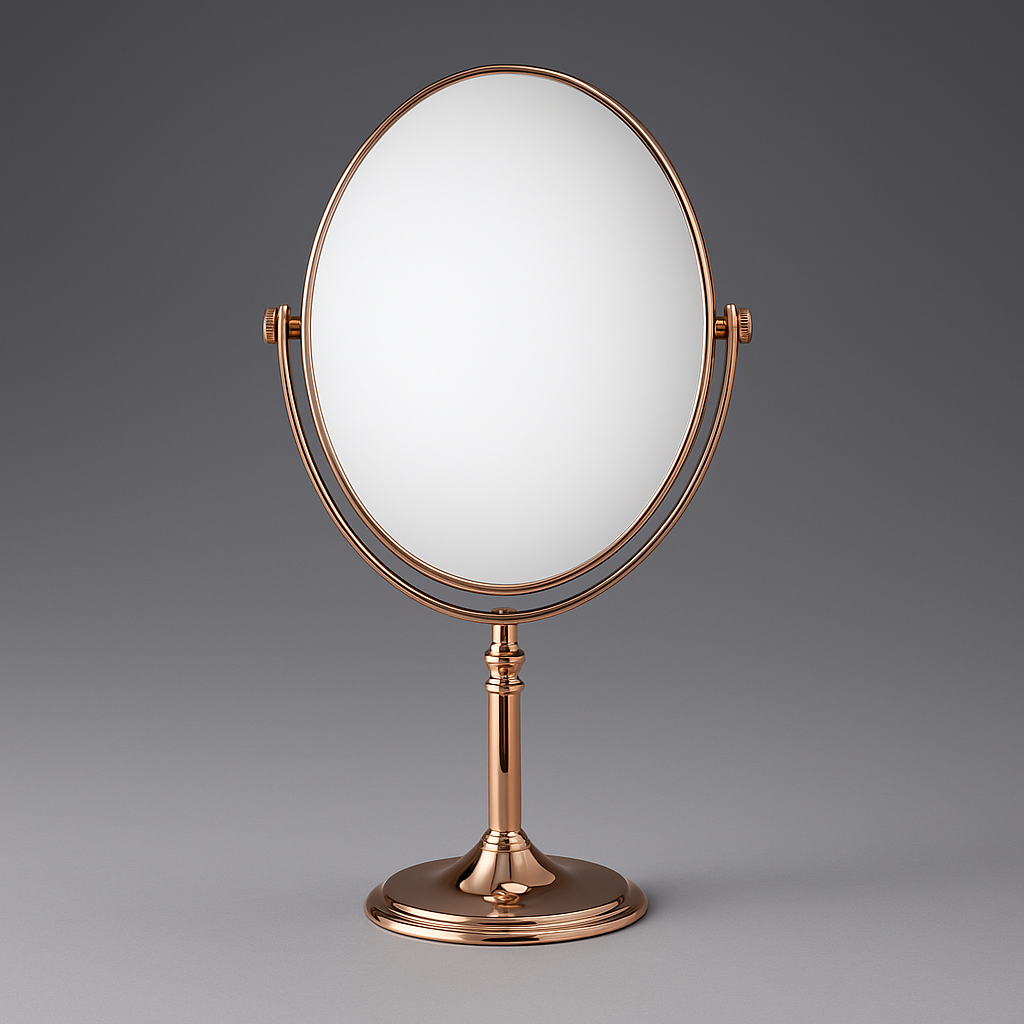 Il specchio da appoggio ovale 6" modello 69416 è un accessorio elegante e funzionale, ideale per la cura quotidiana del viso, il trucco o la rasatura. Realizzato in metallo con una splendida finitura oro rosa, dona un tocco raffinato e moderno a qualsiasi ambiente, dal bagno alla toletta.