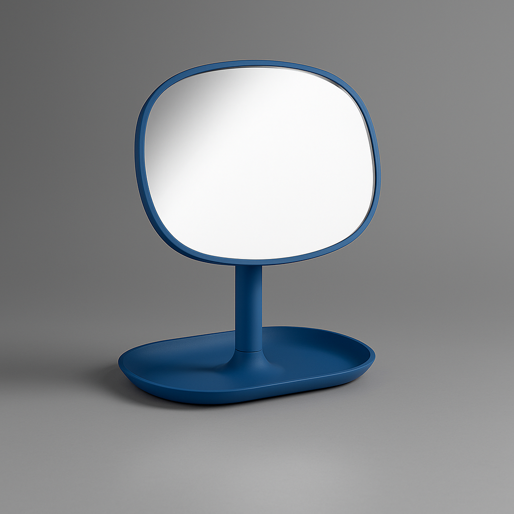Elegante specchio da tavolo con cornice colorata e base d’appoggio. Design moderno e pratico, ideale per trucco, rasatura o come specchio da appoggio in bagno e camera.