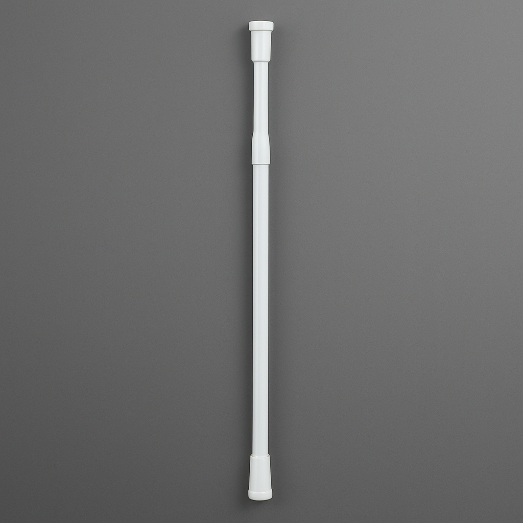 Bastone telescopico per tenda doccia, regolabile da 70 a 120 cm, realizzato in materiale resistente con finitura bianca. Ideale per piccoli spazi e box doccia standard, si installa a pressione senza fori e senza attrezzi. Le estremità antiscivolo garantiscono stabilità e fissaggio sicuro anche su piastrelle lisce.
