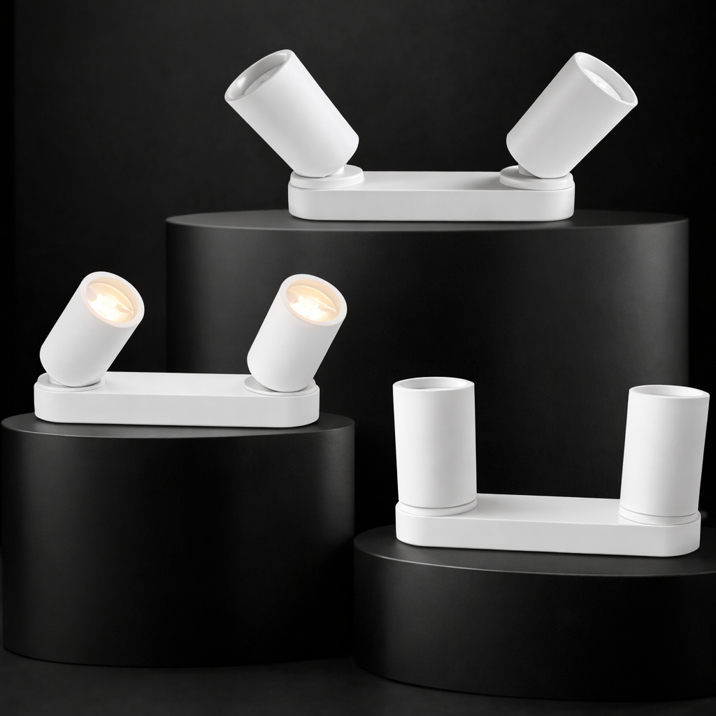 Il faretto da soffitto doppio con attacco GU10 è una soluzione moderna e funzionale per l’illuminazione di ambienti interni. Grazie al design lineare e alla finitura bianca, si integra perfettamente in contesti contemporanei, risultando ideale per soggiorni, cucine, corridoi, uffici e spazi commerciali.