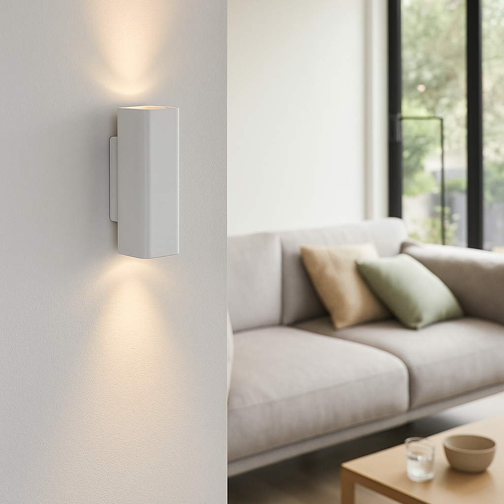 l’applique in gesso gs-e51 è una lampada da parete di design moderno che combina eleganza e funzionalità. grazie al suo doppio attacco gu10, offre una luce decorativa e bilanciata, perfetta per creare atmosfere accoglienti e sofisticate negli interni domestici e professionali.