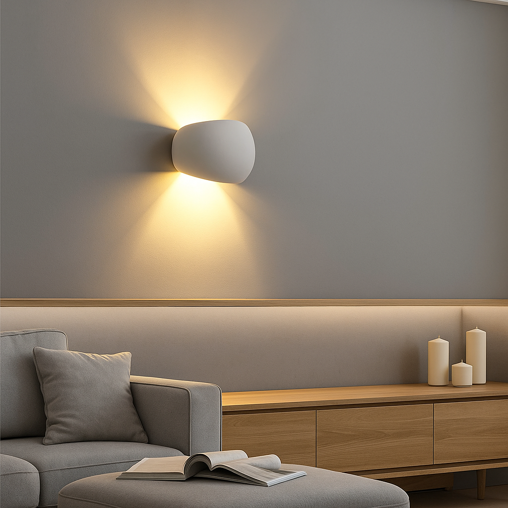 Plafoniera Applique in gesso a montaggio superficiale per lampadine G9 (1x G9 non inclusa nella confezione). Design ultramoderno di forma sferica, con emissione luminosa superiore ed inferiore. Ideale per creare luci soffuse, giochi di ombre e chiaro-scuro