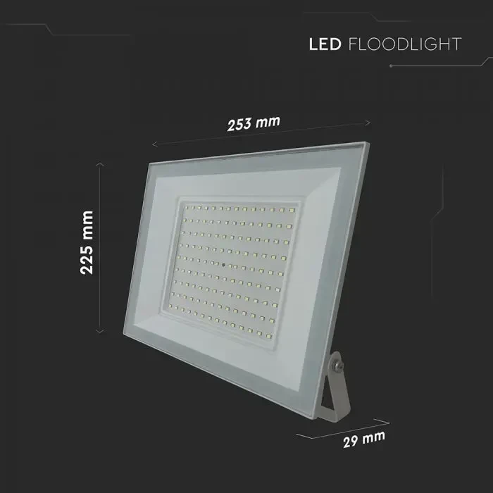 Il grado di protezione IP65 assicura resistenza a polvere e getti d’acqua, rendendo il proiettore adatto all’uso esterno anche in condizioni atmosferiche avverse.