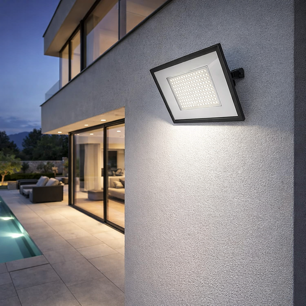 Dotato di driver integrato, questo proiettore LED assicura un’installazione semplice e sicura, riducendo al minimo gli ingombri. La tonalità di luce 4000K (bianco naturale) offre un’illuminazione equilibrata e confortevole, perfetta per aree di lavoro, parcheggi, facciate, cortili e capannoni.