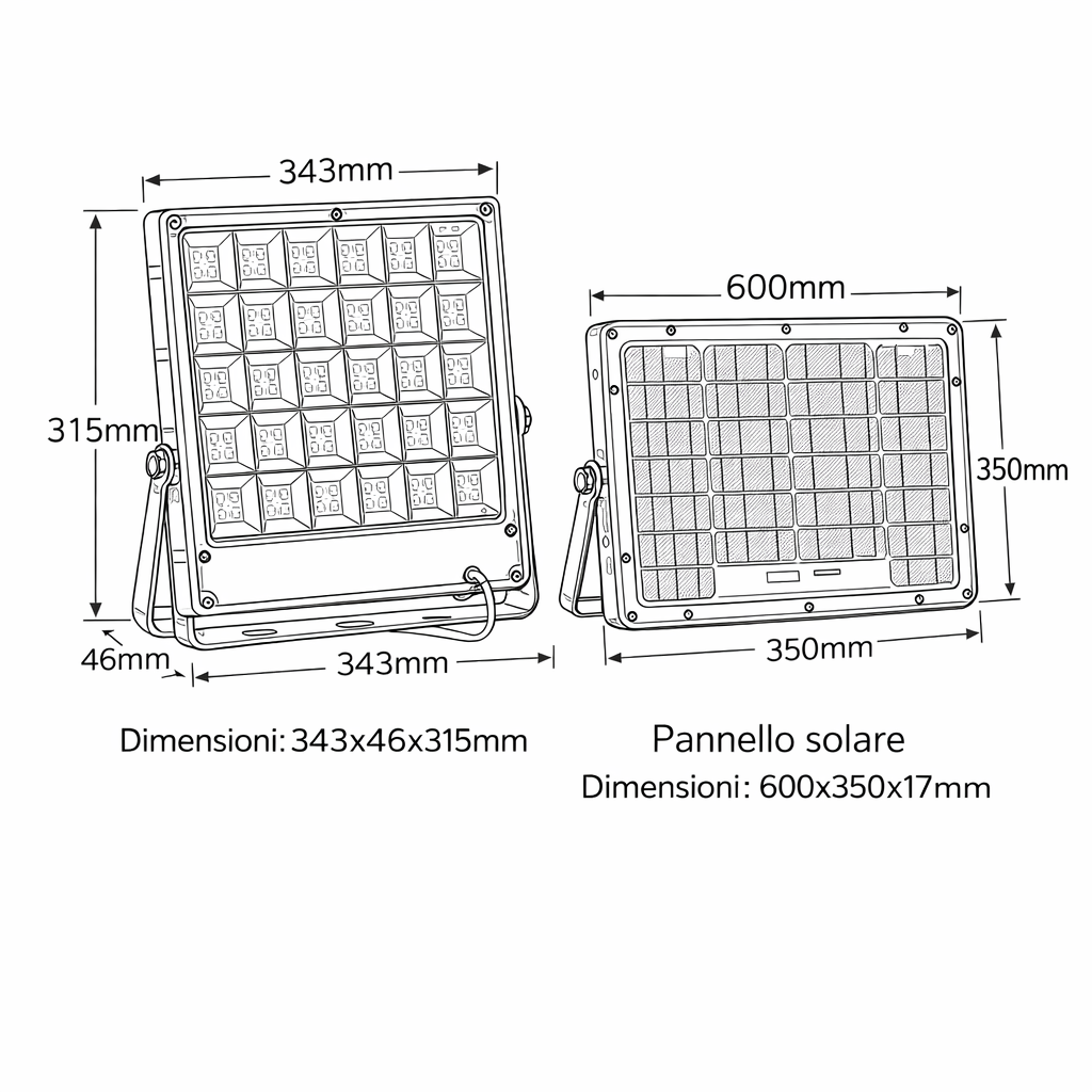 - dimensioni pannello solare: 600 x 350 x 17 mm