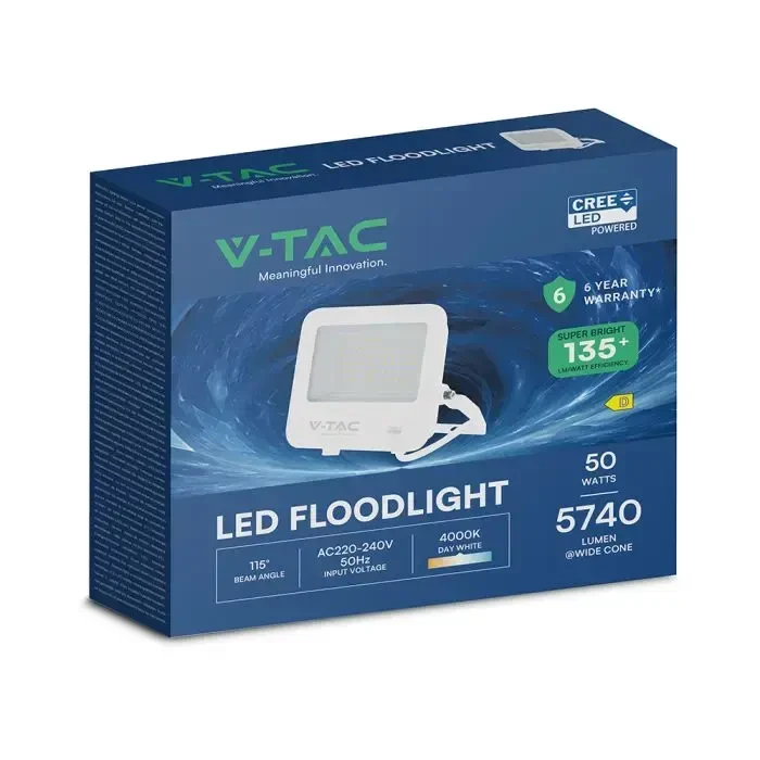 faro slim led smd chip cree 50w 135lm/w cavo 15cm bianco 6500k ip65