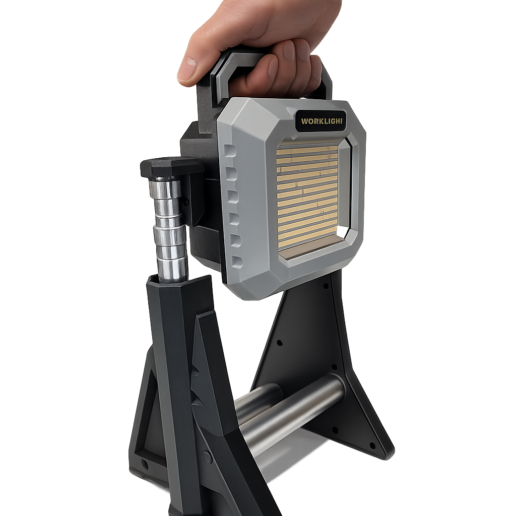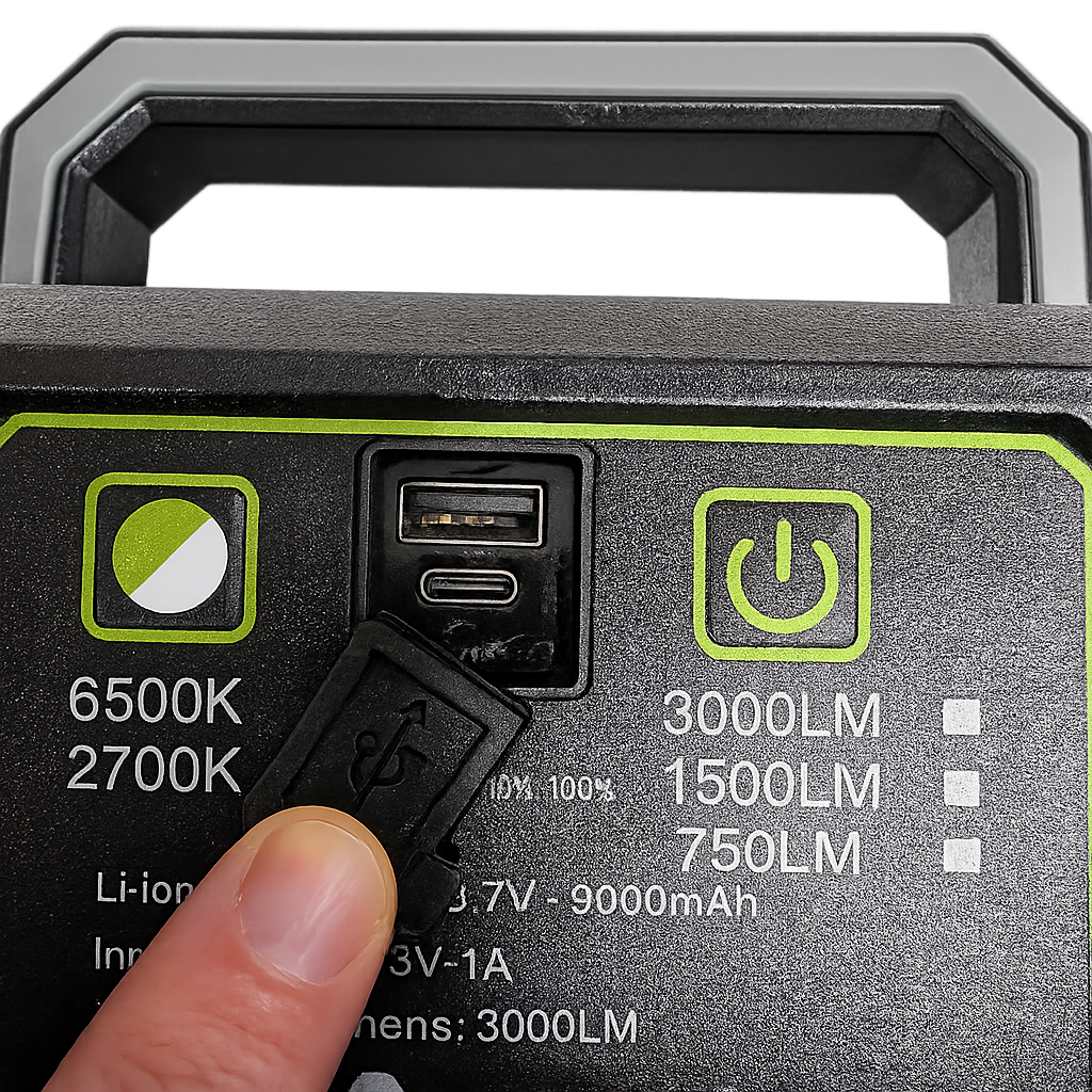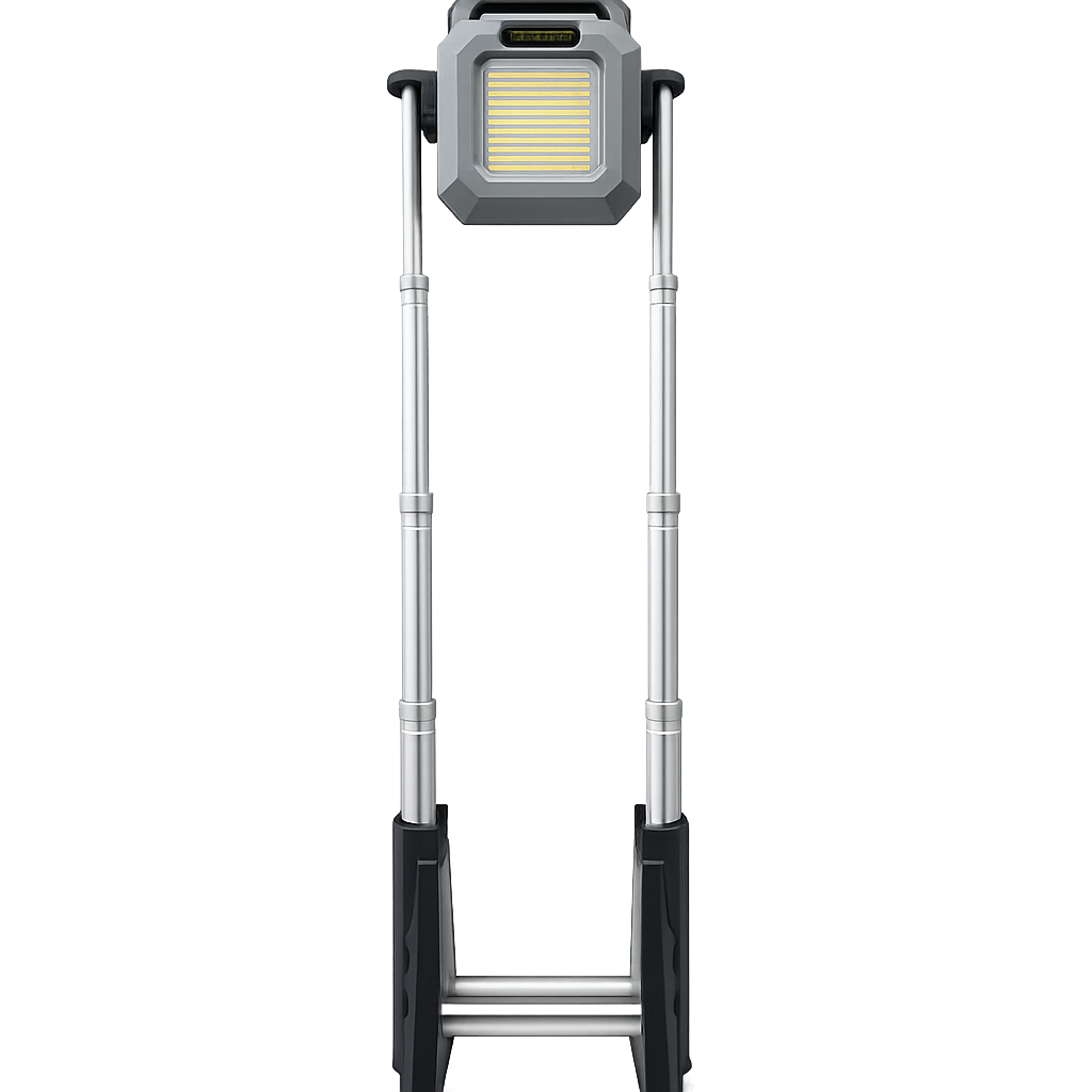 Questa lampada LED portatile ricaricabile è progettata per offrire illuminazione versatile in molte situazioni, come campeggio, emergenze, lavoro all'aperto o utilizzo domestico. Realizzata con struttura resistente in alluminio e plastica, garantisce durata nel tempo e facilità di trasporto grazie al design compatto e ai pali telescopici retrattili.