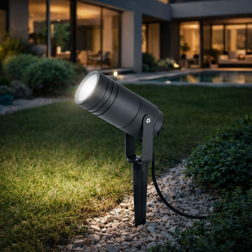 Il faretto da giardino con attacco GU10 è una soluzione pratica ed elegante per l’illuminazione di spazi esterni. Grazie al picchetto, può essere installato direttamente nel terreno, risultando ideale per valorizzare giardini, aiuole, piante e percorsi.