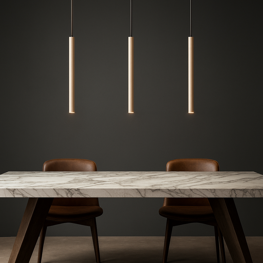 La lampada sospesa SlimLine 3W è una soluzione elegante e minimale per l’illuminazione puntuale di banconi, tavoli, isole cucina e angoli lettura. Il corpo cilindrico in alluminio e metallo, dal diametro ridotto, crea un effetto moderno e discreto che valorizza gli ambienti contemporanei.