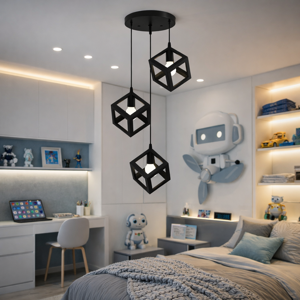 Il lampadario a sospensione Univers LP-47N è una soluzione di illuminazione moderna e decorativa caratterizzata da un design geometrico elegante. La struttura con tre elementi cubici sospesi crea un effetto scenografico contemporaneo, ideale per valorizzare soggiorni, sale da pranzo, cucine, uffici o ambienti commerciali.