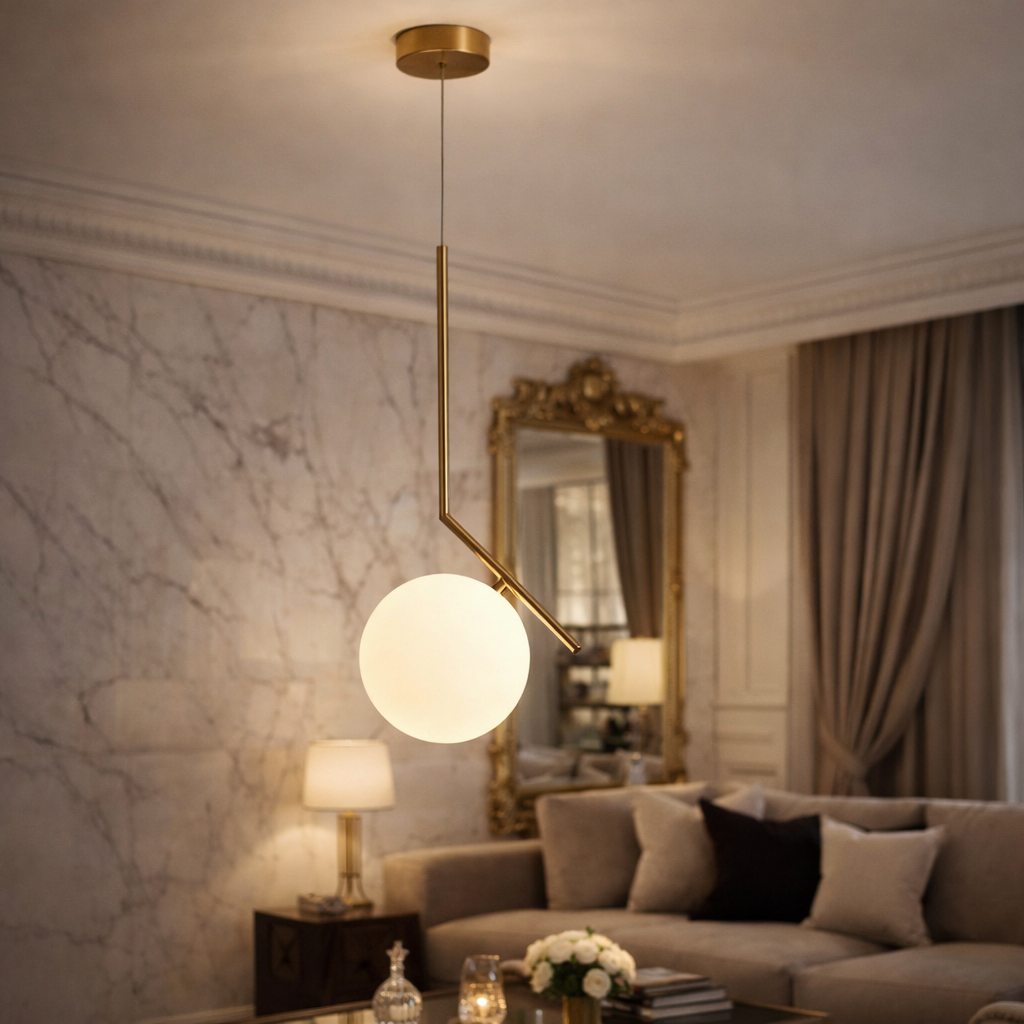 Il lampadario LP-46 è una soluzione di illuminazione elegante e minimale, ideale per arredare ambienti interni moderni come soggiorni, sale da pranzo, cucine, camere da letto e spazi contract. Il suo design raffinato con struttura lineare e diffusore sferico lo rende perfetto per chi cerca un punto luce decorativo e funzionale.