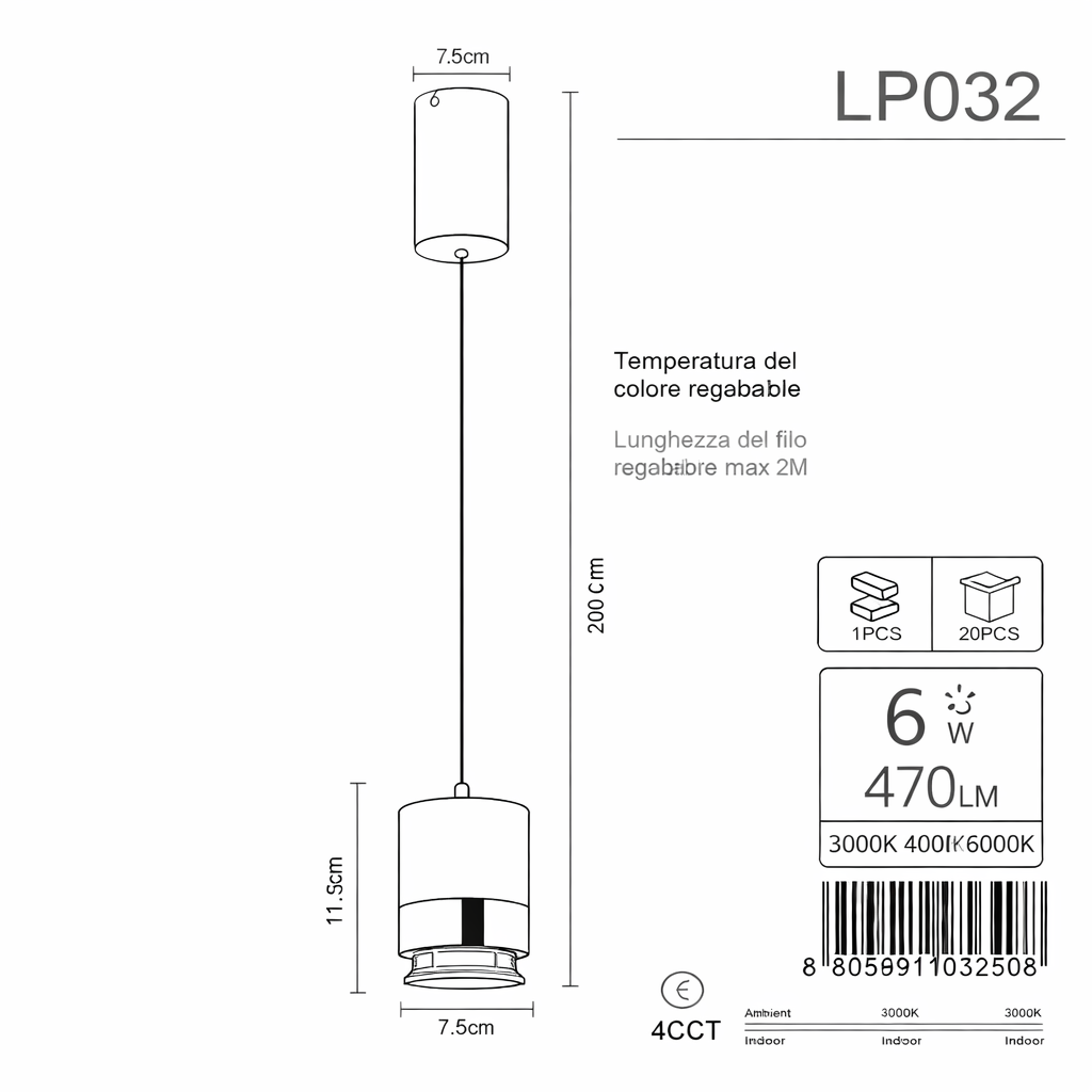 Il lampadario a sospensione LED 6W è una soluzione elegante e moderna, caratterizzata da un design cilindrico compatto con finiture raffinate. Ideale per cucine, soggiorni, corridoi, banconi e ambienti commerciali, unisce estetica e funzionalità in un unico prodotto.