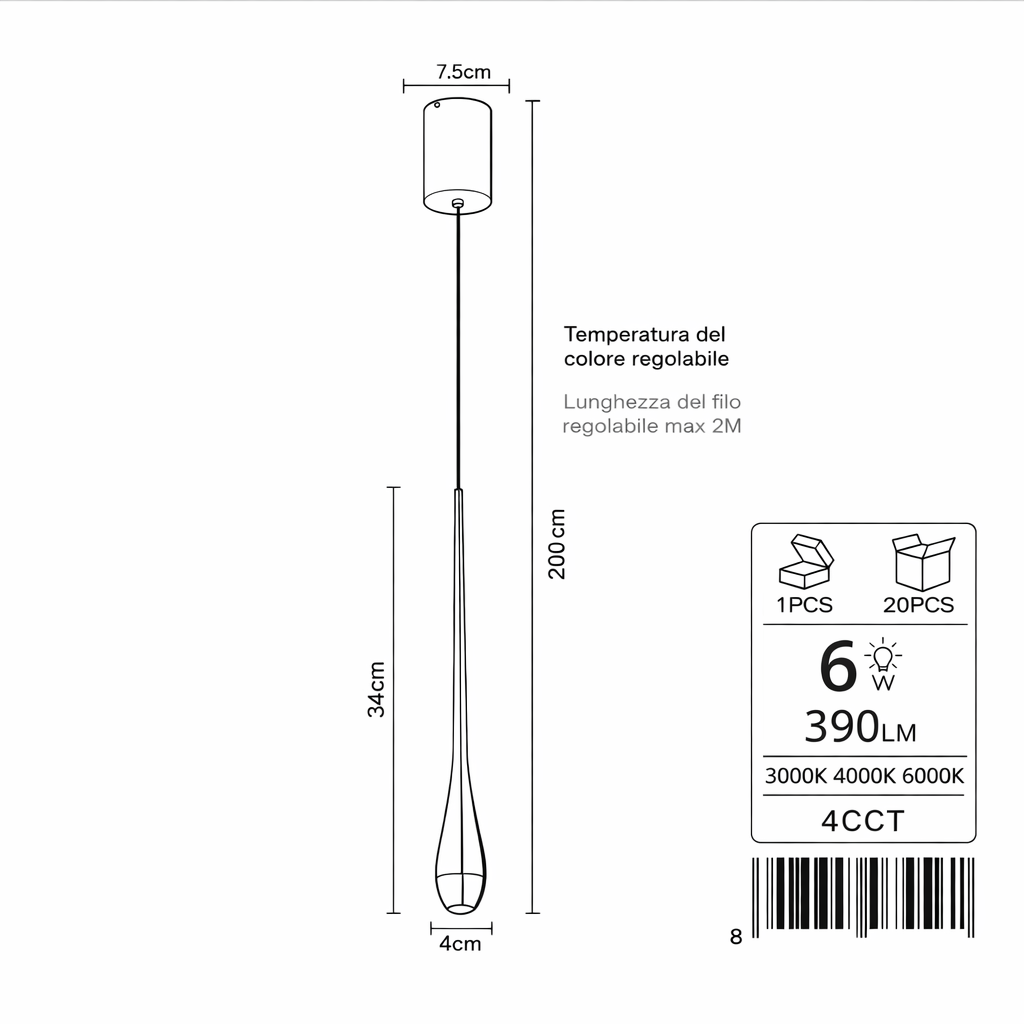 Il lampadario a sospensione LED 6W si distingue per il suo design estremamente sottile ed elegante, ideale per ambienti moderni e minimalisti. Perfetto per cucine, isole, banconi, corridoi e spazi commerciali, rappresenta una soluzione decorativa raffinata e funzionale.