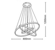 Elegante lampadario LED moderno modello LP-51-B3C da 86W con design ad anelli intrecciati, ideale per ambienti contemporanei come soggiorni, sale da pranzo e open space.