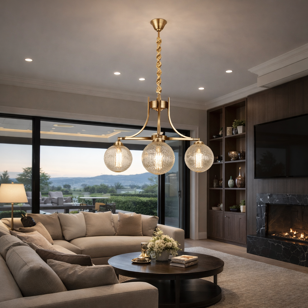 Il lampadario SJ-181 firmato EUROPA TEK è una sospensione elegante dal design moderno con finitura oro, ideale per soggiorni, sale da pranzo e ambienti contemporanei. La struttura a tre bracci sostiene tre diffusori sferici in vetro che valorizzano l’estetica dell’ambiente.