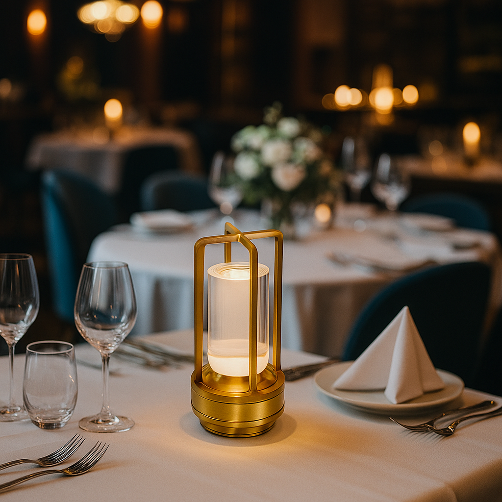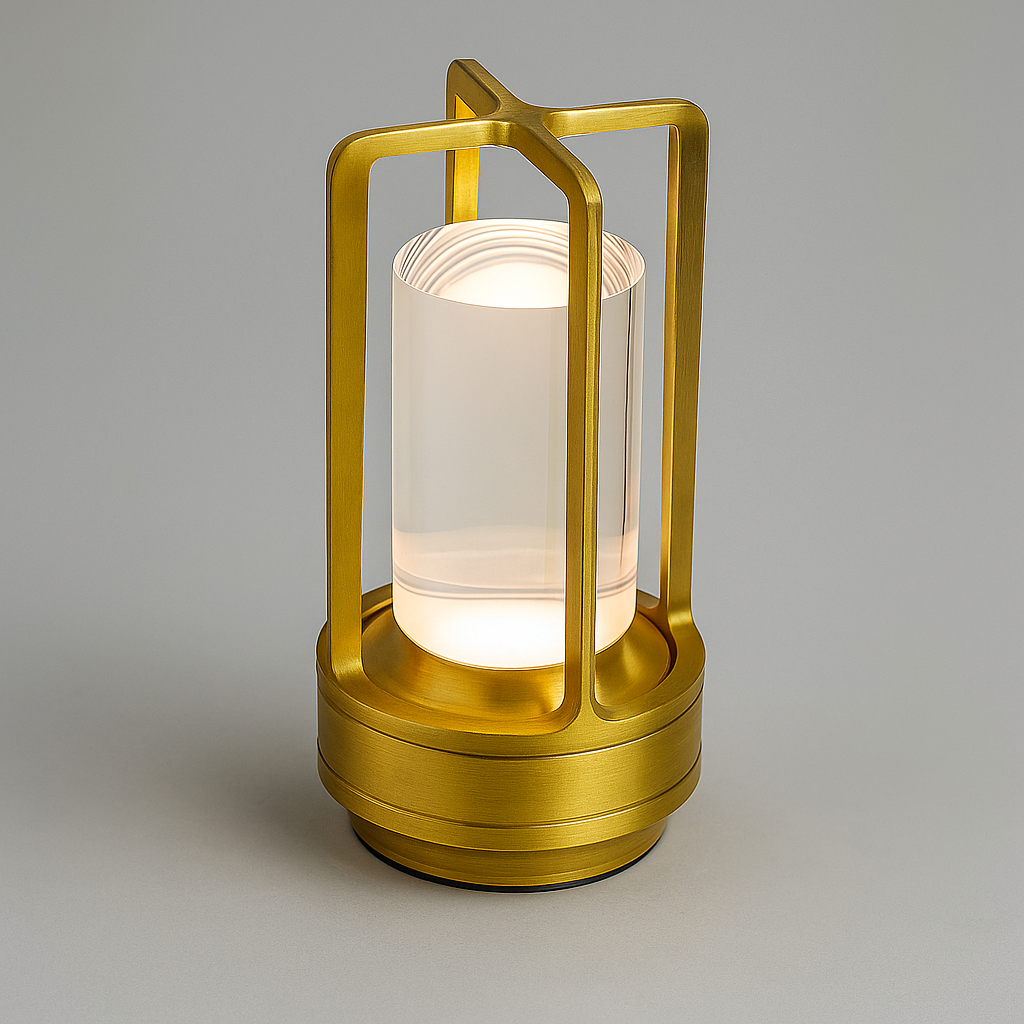 Lampada da tavolo LED con intensità e temperatura regolabili, corpo in alluminio.