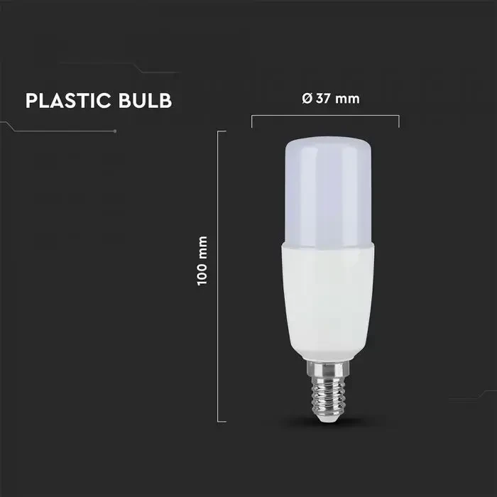 Lampadina LED con attacco E14 da 7,5 W, forma T37 e luce bianco freddo 6500 K. Elevata luminosità, lunga durata e consumi ridotti per ambienti dove serve una luce intensa e nitida.
