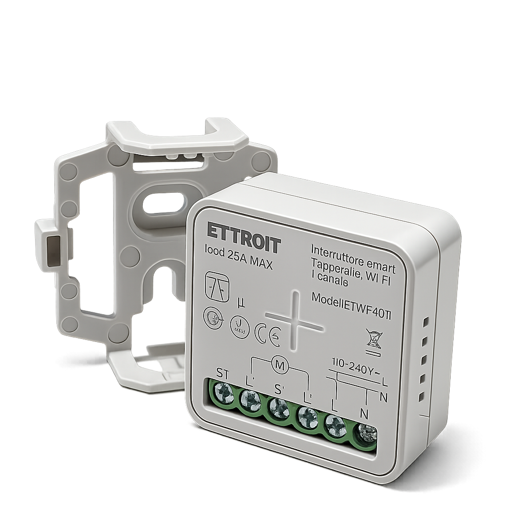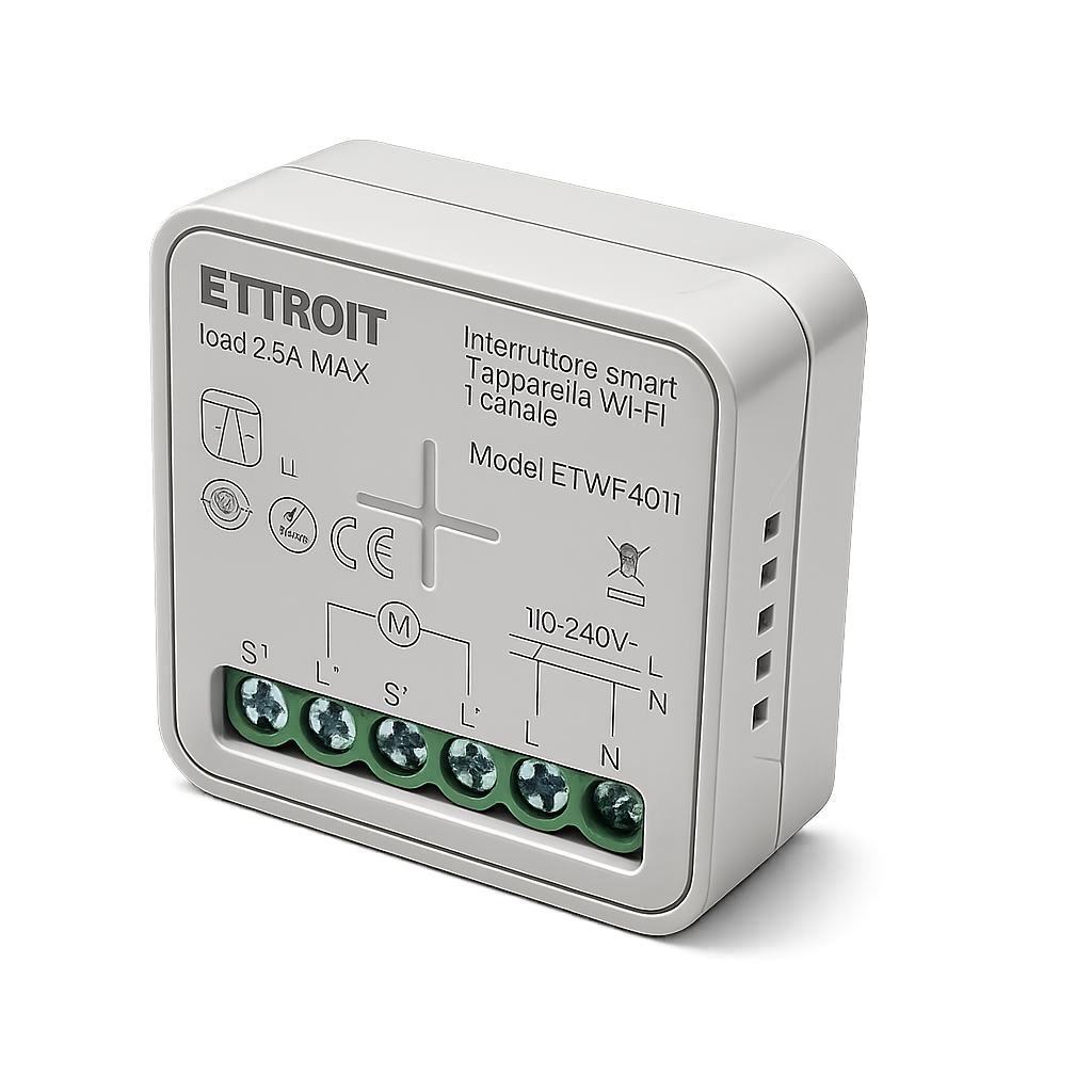modulo smart wi-fi progettato per il controllo automatizzato di tapparelle elettriche, tende motorizzate e sistemi avvolgibili. consente la gestione intelligente della salita e discesa del motore tramite app o comando manuale.