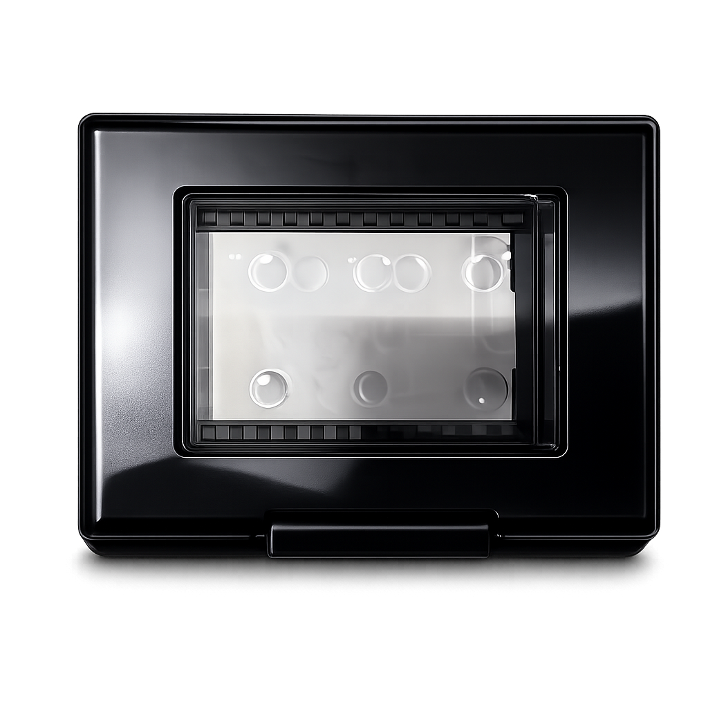 Idrobox da esterno in finitura bianco opaco, realizzata in policarbonato autoestinguente V0, resistente a urti, graffi e raggi UV. Il design minimale con profilo sottile valorizza ogni ambiente, offrendo un aspetto elegante e moderno. Compatibile con tutti i frutti modulari della “Serie Ginevra”, è ideale sia per ambienti residenziali che commerciali.
