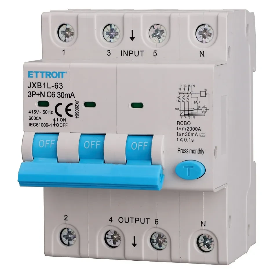magnetotermico differenziale 3p+n 6a 30ma 380v-6ka classe a