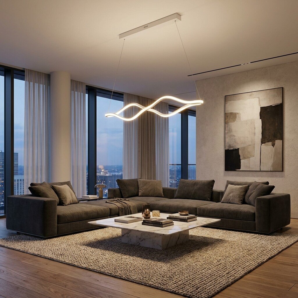 Il lampadario LED a sospensione da 58W con design ondulato moderno è una soluzione decorativa elegante e contemporanea, ideale per illuminare soggiorni, tavoli da pranzo, open space e ambienti di design. La particolare struttura a linee intrecciate crea un effetto visivo dinamico e raffinato.