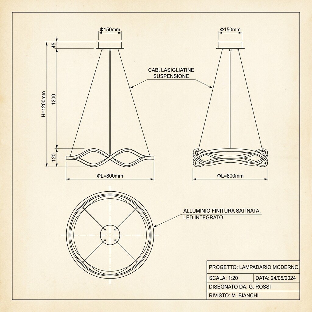 - Tipologia: lampadario LED a sospensione