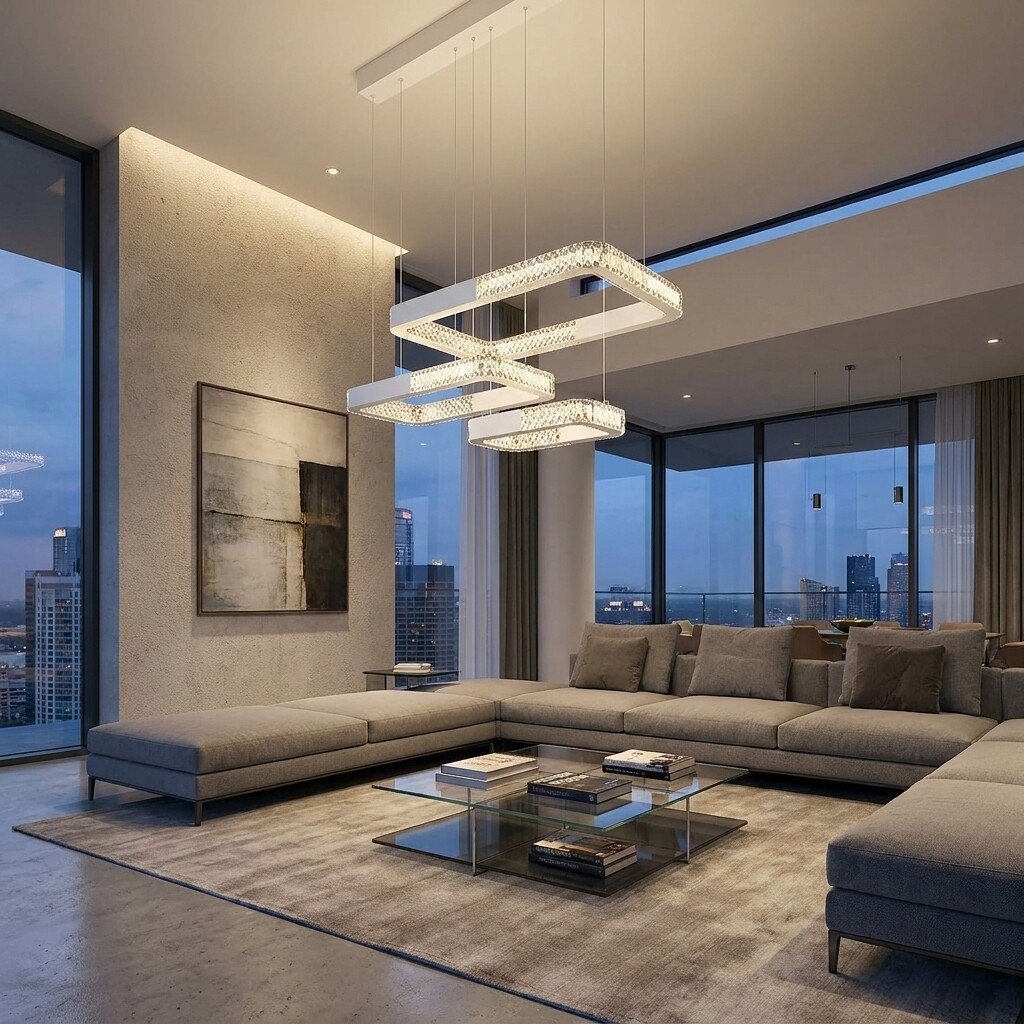 Perfetto per chi cerca un’illuminazione decorativa di forte impatto, questo lampadario combina design contemporaneo, efficienza energetica e controllo intelligente, offrendo eleganza e massimo comfort visivo.