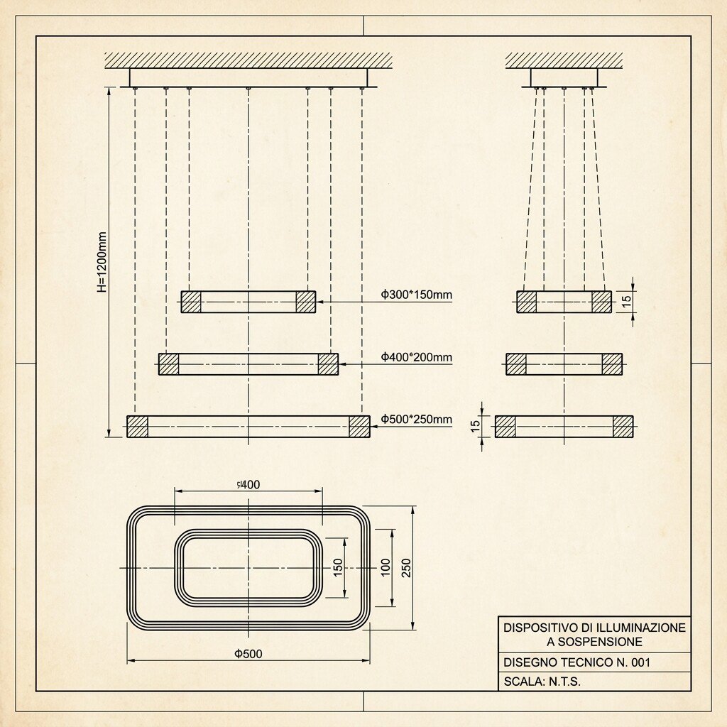 Il lampadario LED a sospensione da 68W con struttura multibarra a tre elementi sospesi è una soluzione decorativa moderna e scenografica, ideale per illuminare con stile soggiorni, tavoli da pranzo, open space e ambienti contemporanei.