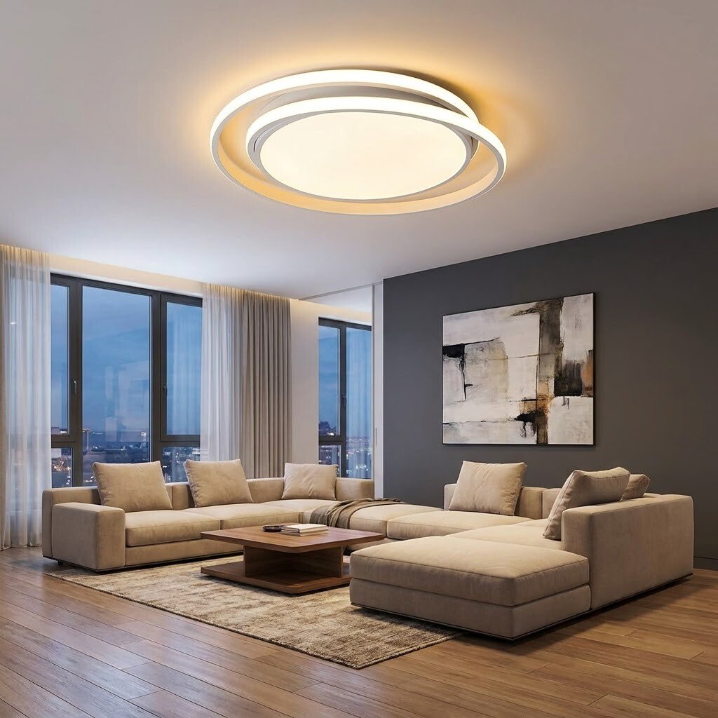 La plafoniera LED da 60W con design circolare moderno è una soluzione elegante e decorativa ideale per illuminare ambienti contemporanei con stile. La struttura con anelli concentrici dona profondità e un effetto luminoso raffinato, perfetto per camere da letto, soggiorni, ingressi e ambienti moderni.