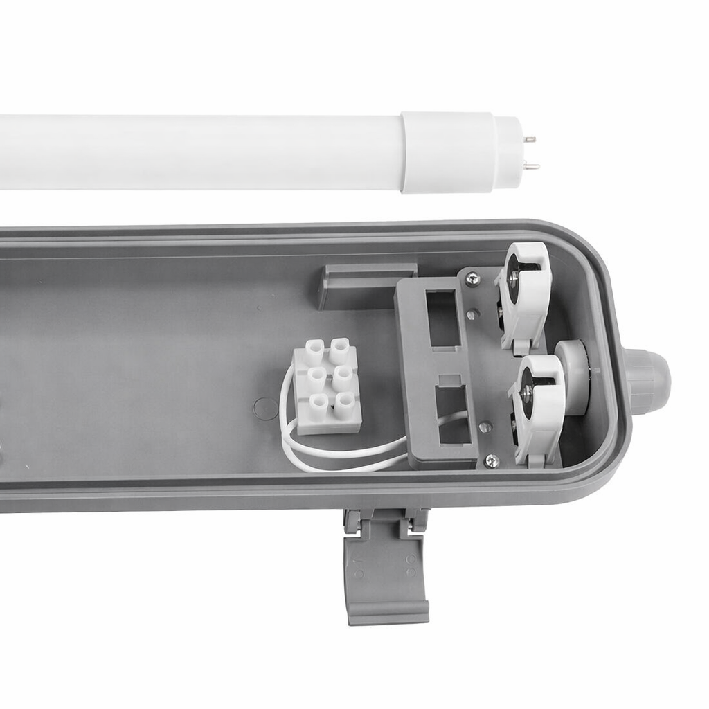 Questa plafoniera offre massima protezione contro polvere e acqua, rendendola ideale per ambienti industriali e commerciali. La compatibilità con tubi LED T8 consente risparmio energetico e manutenzione semplice, garantendo una lunga durata nel tempo.