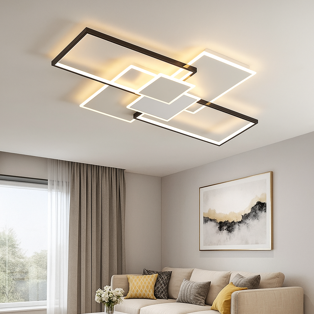 Elegante plafoniera Bluetooth dallo stile geometrico adatta per installazioni a soffitto, ideale per l'illuminazione e la decorazione di ambienti interni come soggiorni, salotti, cucine moderne, salotti ingressi, camere da letto ed in tutti quei posti dove si vuole installare un prodotto dallo stile unico ed innovativo. Dotata di telecomando, grazie al quale può essere dimmerata l'intensità della luce ed anche possibile scegliere la tonalità di luce desiderata da luce calda 3000k fino ad una luce bianca fredda di 6500k. Inoltre è possibile gestire le varie funzioni anche tramite BLUETOOTH, scaricando l'APP sul proprio smartphone.