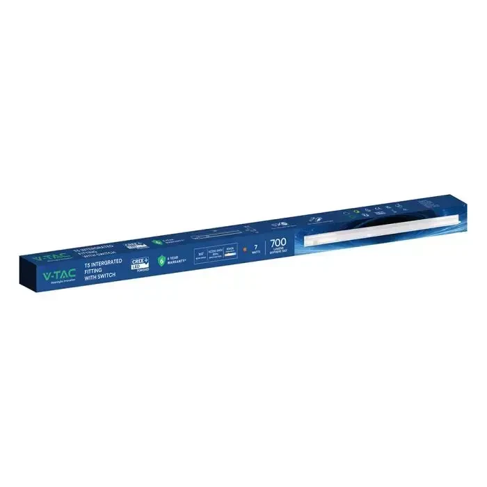 plafoniera led chip cree lineare 7w t5 60cm raccordabile con interruttore 6500k