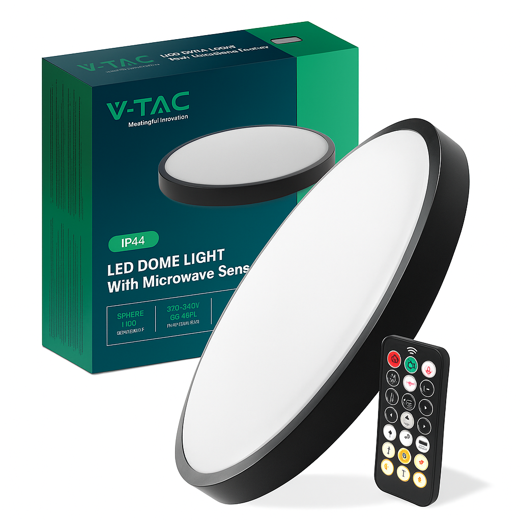 plafoniera led rotonda 24w con telecomando e sensore di movimento a microonde colore nero 4000k ip44