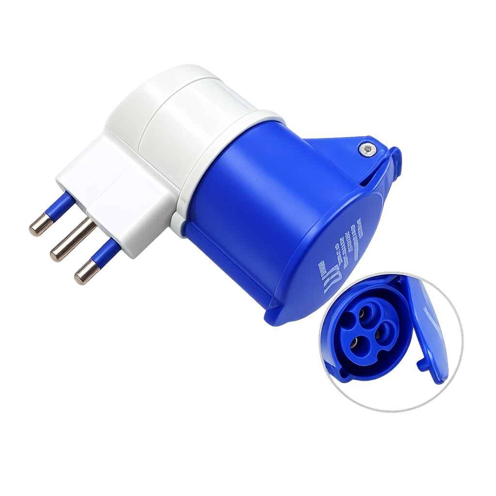 Questo adattatore è ideale quando serve passare da una connessione standard a una presa industriale CEE, mantenendo affidabilità e praticità d’uso. È una soluzione utile in officina, in laboratorio e in contesti tecnici dove è richiesta compatibilità con connettori industriali.