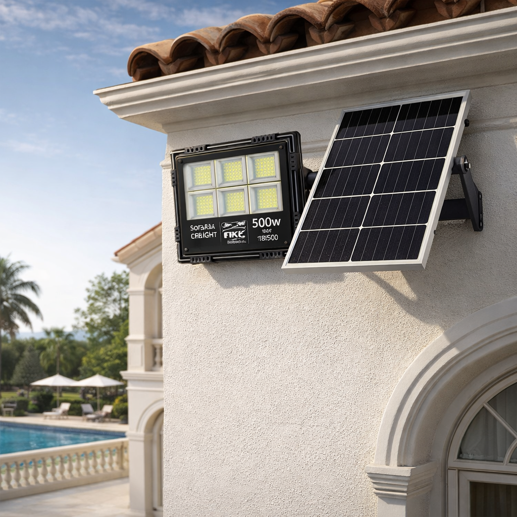 Il faro LED solare 500W Europa Tek è la soluzione ideale per l’illuminazione esterna ad alta potenza senza consumo di energia elettrica. Grazie al pannello fotovoltaico ad alta efficienza, il proiettore accumula energia durante il giorno e garantisce un’illuminazione intensa e uniforme nelle ore notturne.