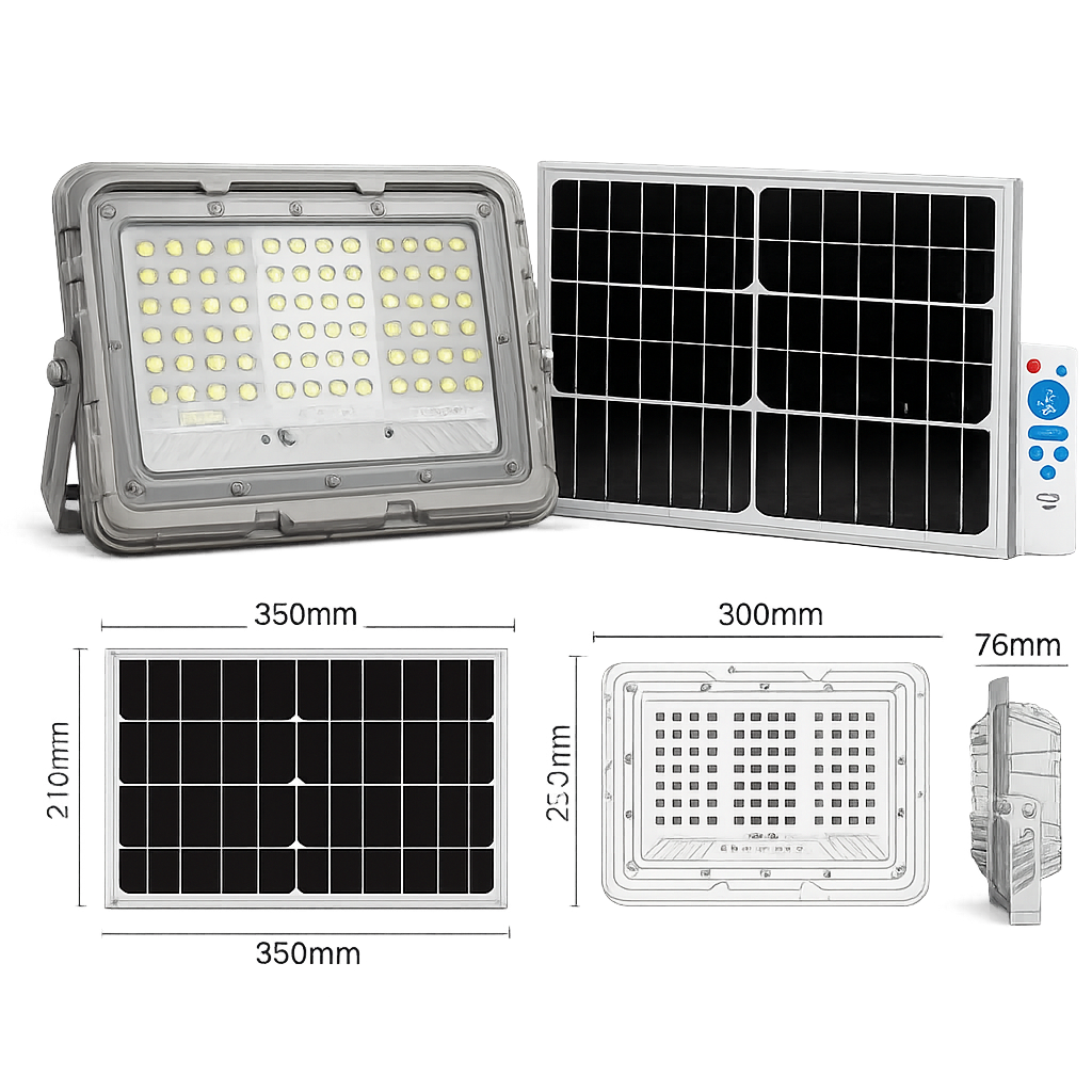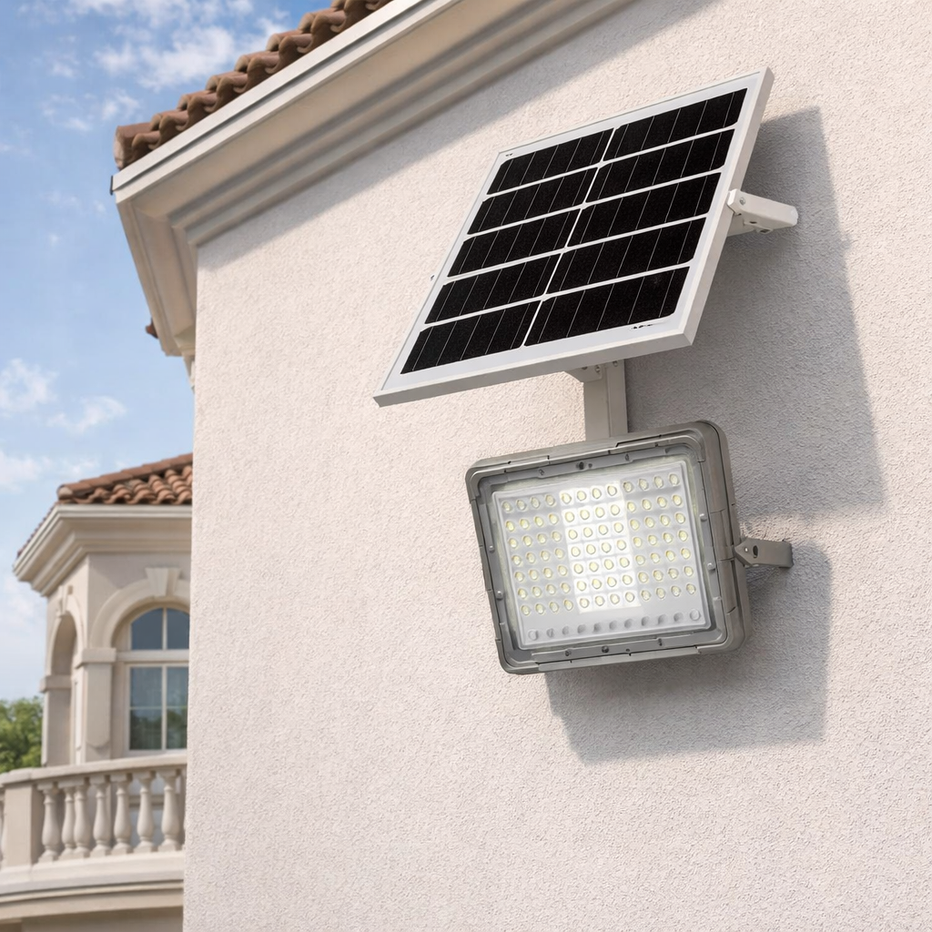 Faro LED Solare S023 400W 6500K Bianco con Pannello Solare e Telecomando