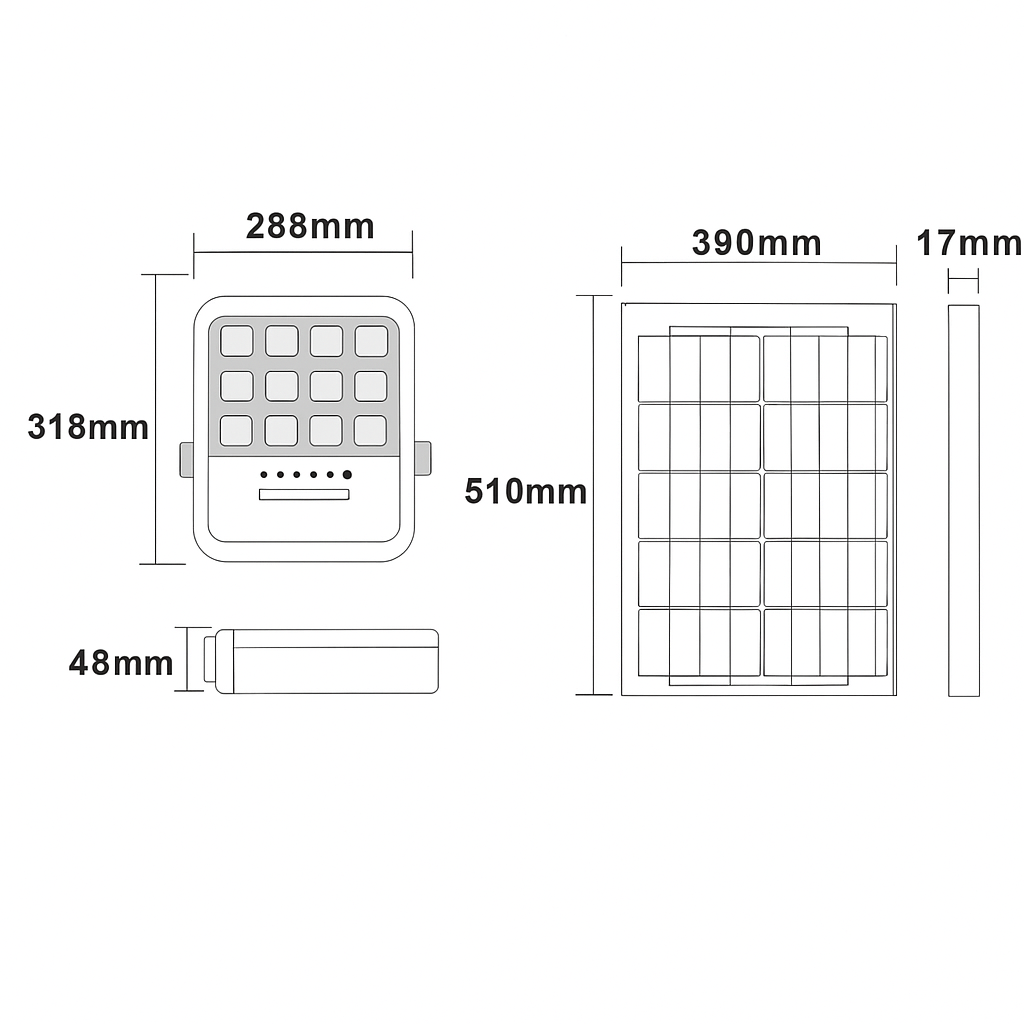 Con una batteria da 32Ah e un pannello solare ad alta efficienza da 35W/5V, il faretto offre fino a 12 ore di illuminazione continua. Inoltre, l’elevata protezione IP65 lo rende ideale per cortili, facciate, giardini, capannoni, aree industriali, parcheggi e zone completamente prive di elettricità.
