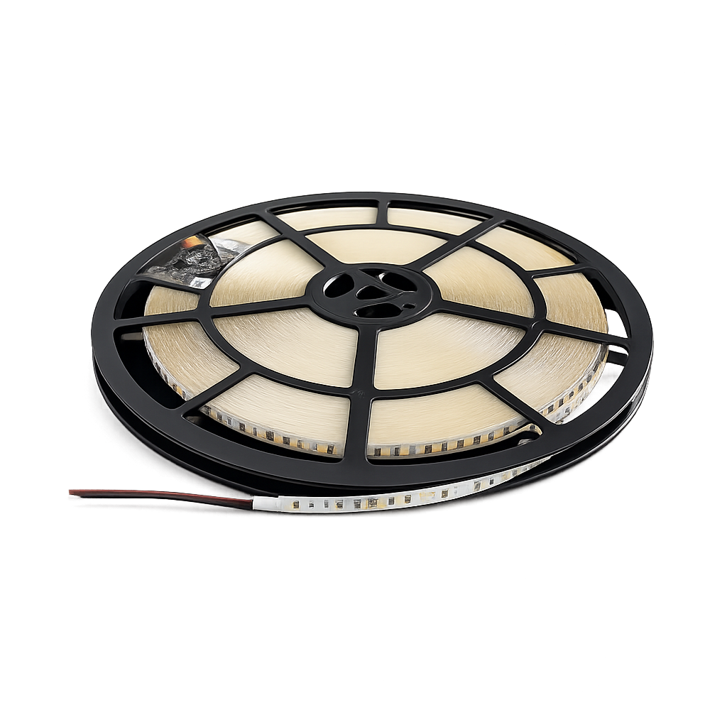 Con una densità di 120 LED per metro, la striscia garantisce una distribuzione luminosa omogenea senza zone d’ombra. Il flusso luminoso di circa 1300 lumen per metro assicura una buona resa luminosa sia per uso decorativo che per illuminazione tecnica.