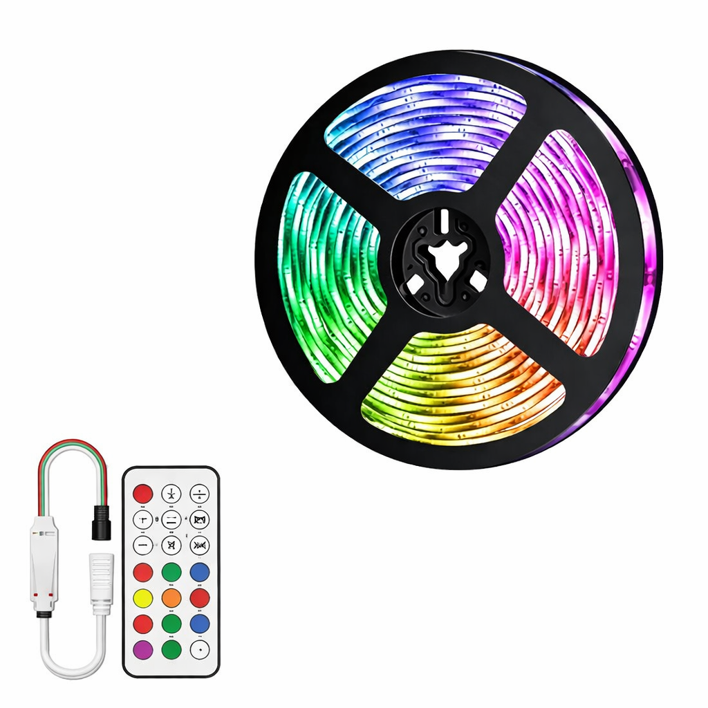 Dotata di telecomando, la striscia permette di selezionare colori, intensità luminosa ed effetti dinamici in modo semplice e immediato. La tecnologia digitale consente variazioni di luce fluide, rendendola perfetta per creare atmosfere suggestive, moderne e coinvolgenti.