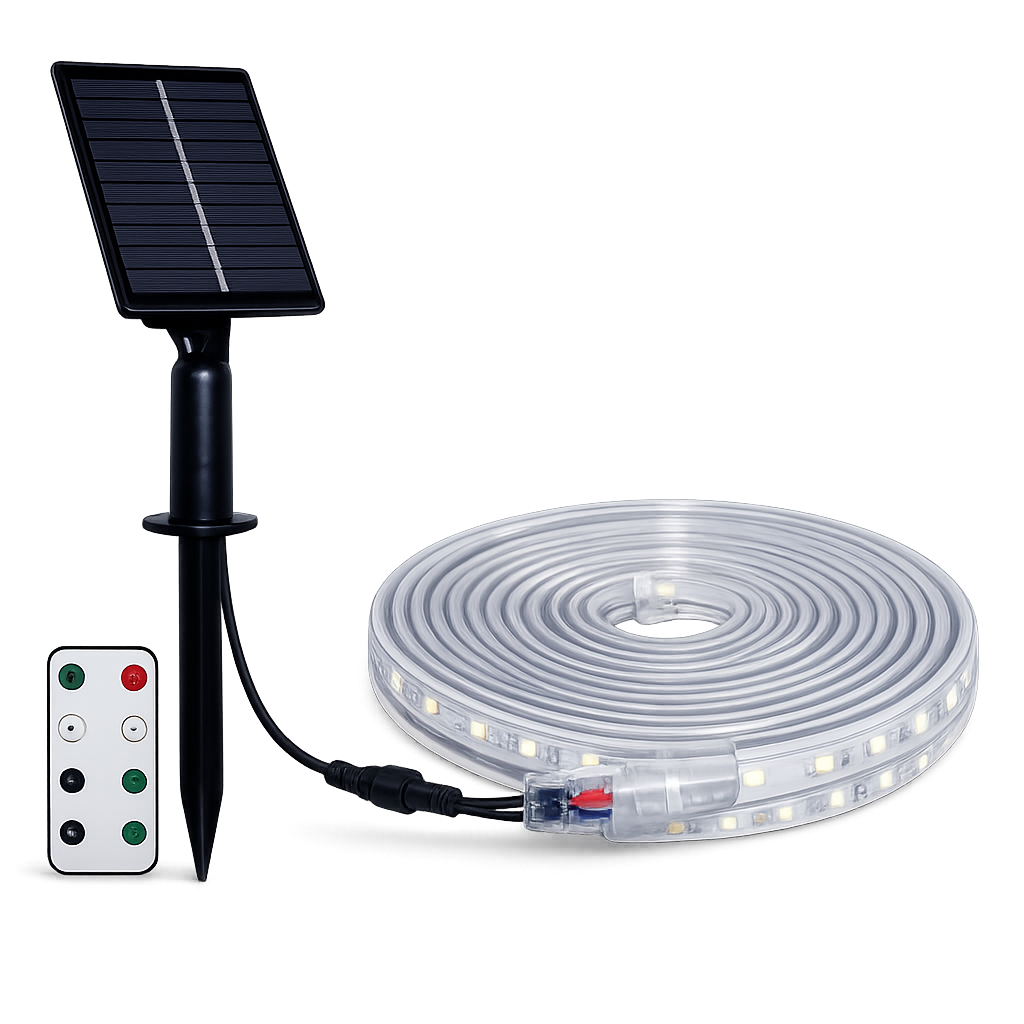 La striscia LED solare da 5 metri è una soluzione di illuminazione efficiente e autonoma progettata per ambienti esterni come giardini, terrazze, balconi, vialetti e decorazioni architettoniche. Grazie al pannello solare integrato, il sistema si ricarica automaticamente durante il giorno e si accende di notte senza bisogno di collegamenti alla rete elettrica.