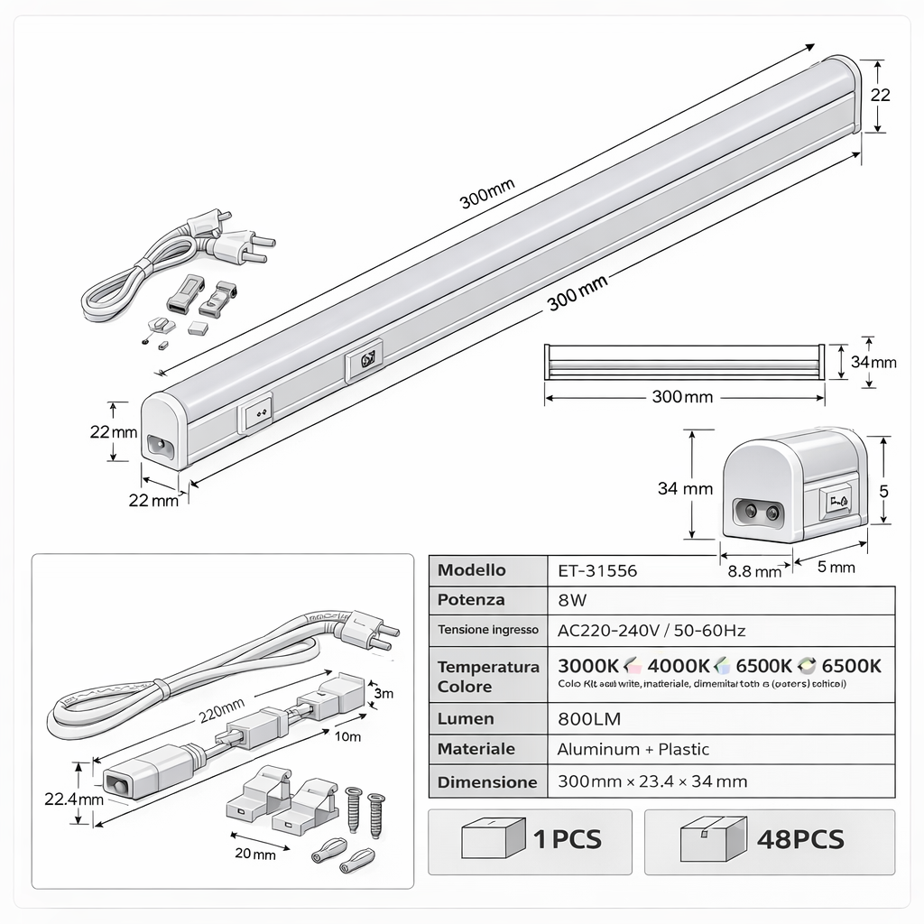 tubo led t5 compatto da 30 cm ideale per illuminazione sottopensile, mobili, scaffalature, garage e ambienti di lavoro. grazie alla tecnologia 3cct permette di selezionare facilmente la temperatura colore desiderata.