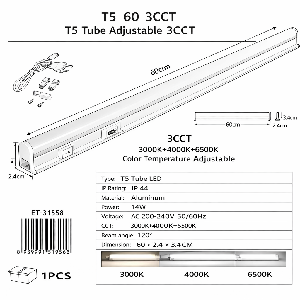 tubo led t5 da 60 cm ideale per illuminazione sottopensile, scaffalature, banchi da lavoro e ambienti interni. offre una luce uniforme, potente ed efficiente, perfetta per uso domestico e professionale.
