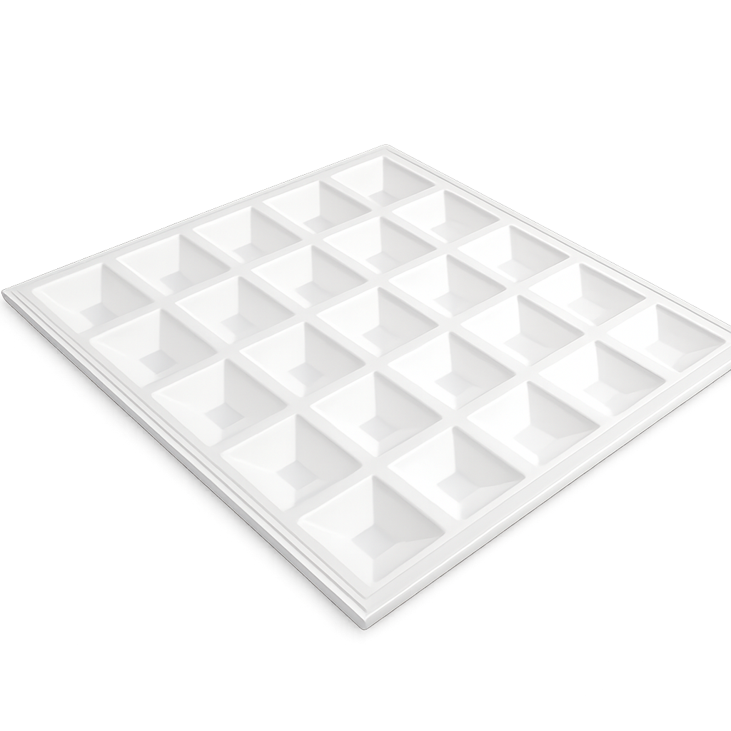 pannello led quadrato da incasso progettato per illuminazione interna professionale in uffici, negozi, scuole e ambienti commerciali. il design moderno con diffusore a griglia garantisce una distribuzione uniforme della luce e un elevato comfort visivo riducendo l'abbagliamento.