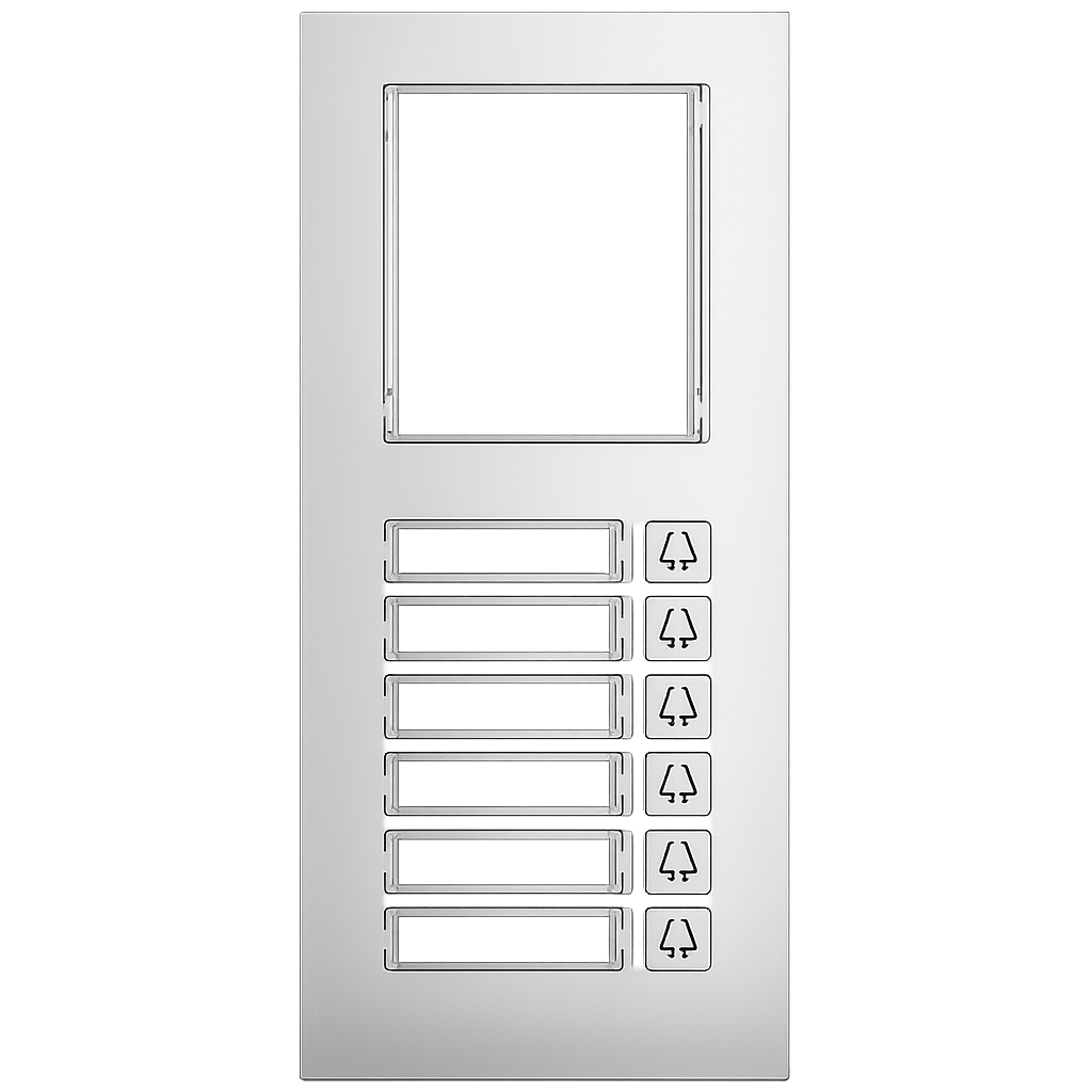 I 6 pulsanti meccanici retroilluminati a LED migliorano la visibilità delle targhette anche in condizioni di scarsa illuminazione, facilitando l’utilizzo del sistema da parte dei visitatori. Il pannello frontale è realizzato in lega di alluminio resistente con grado di protezione IP65, garantendo affidabilità e durata anche in installazioni esterne. :contentReference[oaicite:2]{index=2}