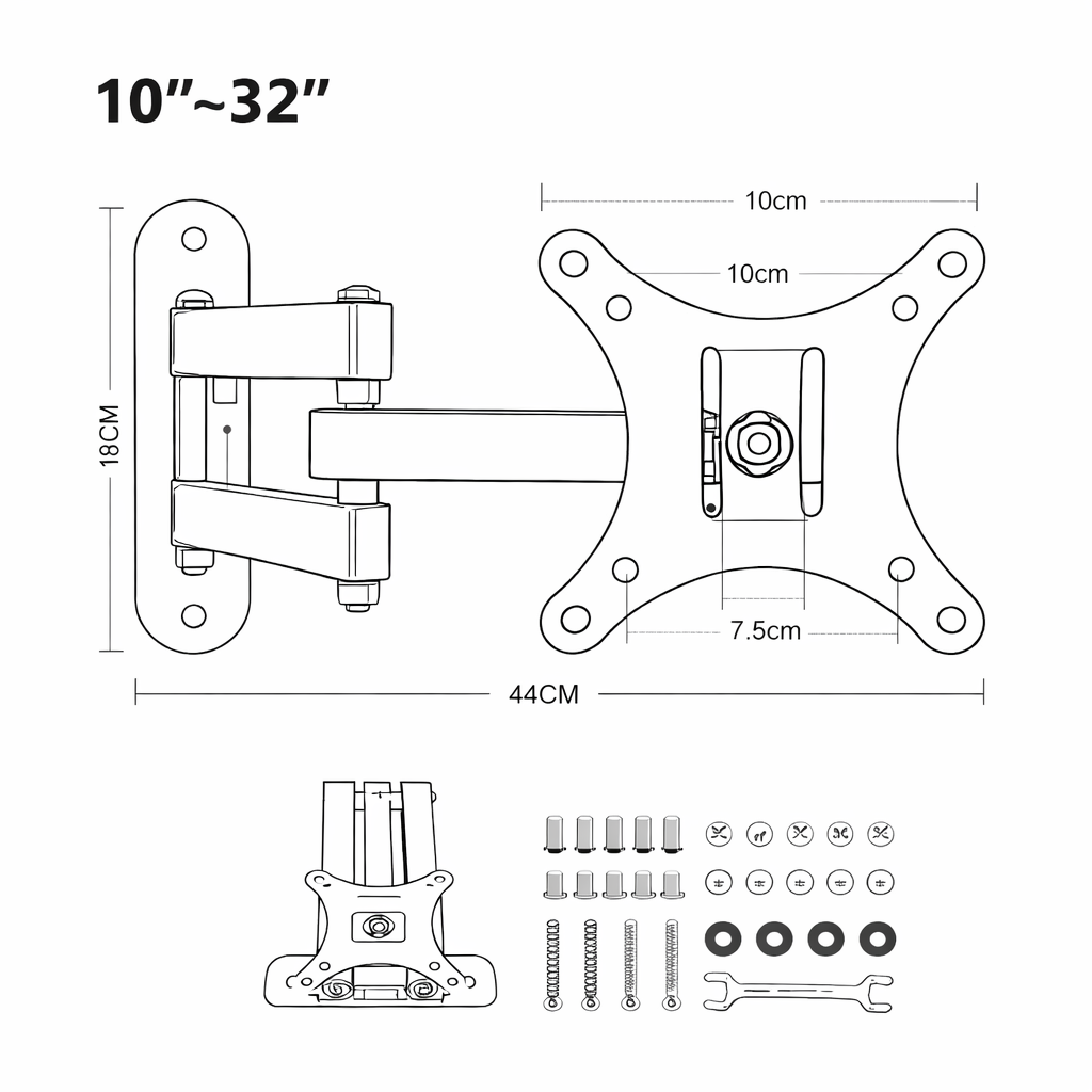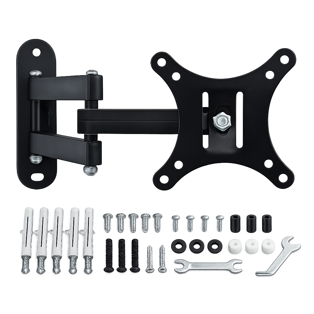 Staffa da parete orientabile per televisore modello AS-30004, progettata per il montaggio sicuro e flessibile di TV da 10 a 32 pollici. Ideale per ambienti domestici e professionali, consente di regolare facilmente la posizione dello schermo per una visione ottimale.
