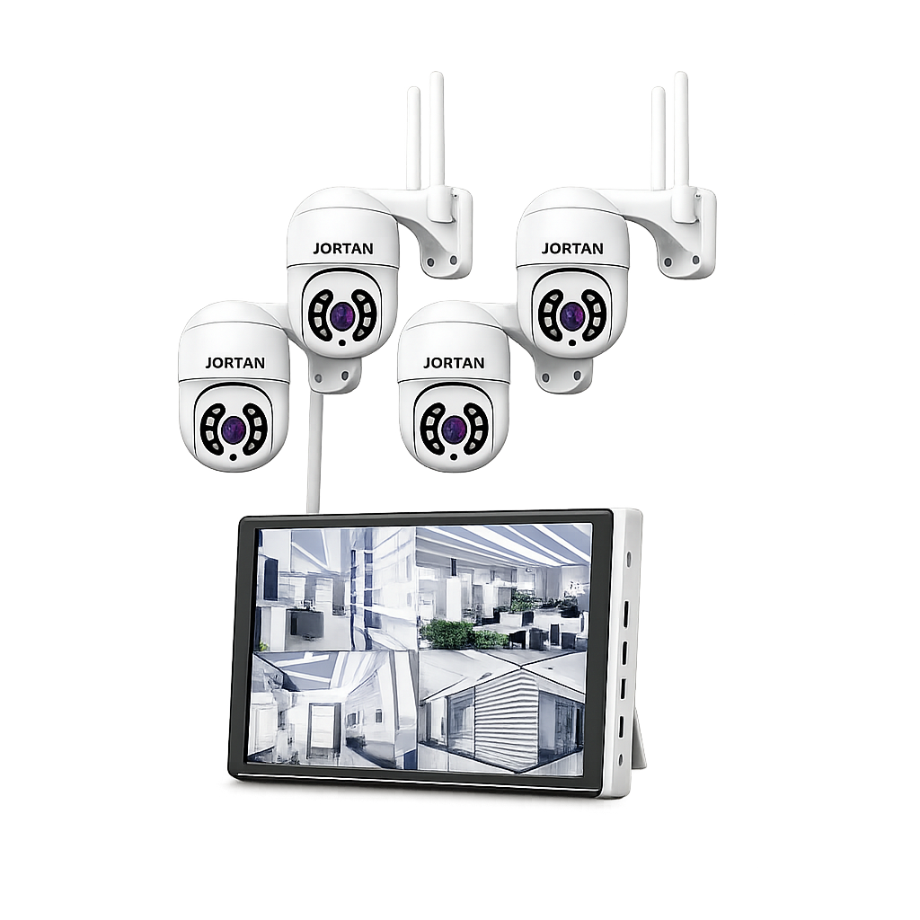 Il JORDAN JT-8276Pro-4 è un sistema di videosorveglianza HD 1080P WiFi IP Camera completo di monitor NVR integrato, progettato per offrire controllo immediato e installazione semplificata. Il kit comprende 4 telecamere IP wireless dome con doppia antenna e un’unità centrale con schermo, ideale per ambienti residenziali, uffici, negozi e capannoni.