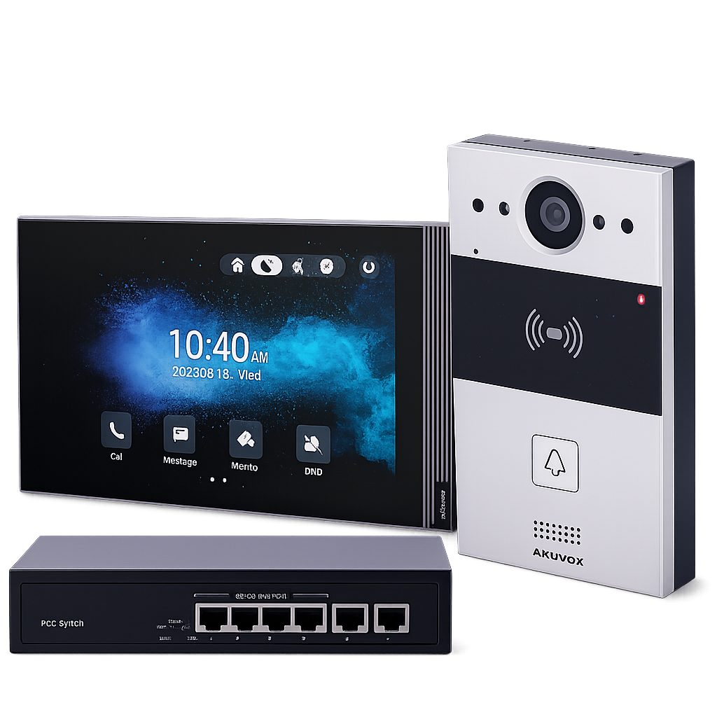 akuvox ak-kit04-ip videocitofono ip completo con monitor 7" lcd, audio bidirezionale, lettore rfid/nfc e connessione cloud
